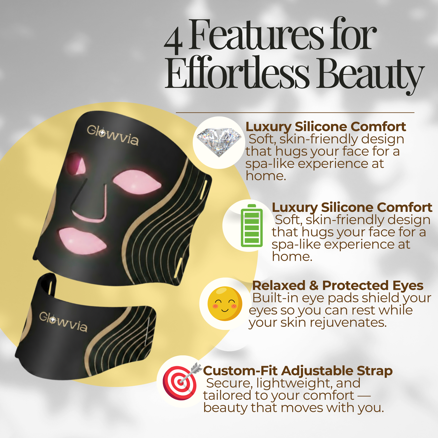 More than just a skincare device,Glowvia™is your passport to timeless beauty. Designed with award-winning LED light technology, it penetrates beneath the surface for results that last. Crafted with elegance and innovation, Glowvia transforms your daily routine into a rejuvenating spa experience—because glowing skin is never out of style.